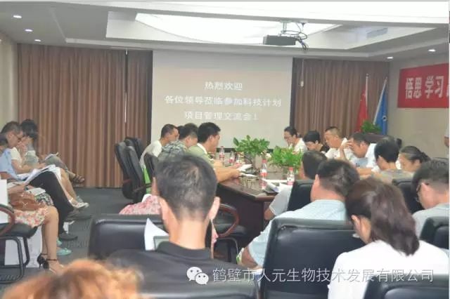 2016年8月4日下午,由鶴壁市科技局主辦、鶴壁市人元生物技術(shù)發(fā)展有限公司承辦的“鶴壁市第一期科技計(jì)劃項(xiàng)目管理交流會”在我司會議室召開,來自各縣區(qū)的科技局主管領(lǐng)導(dǎo)及企業(yè)代表30余人參加了此次交流會。