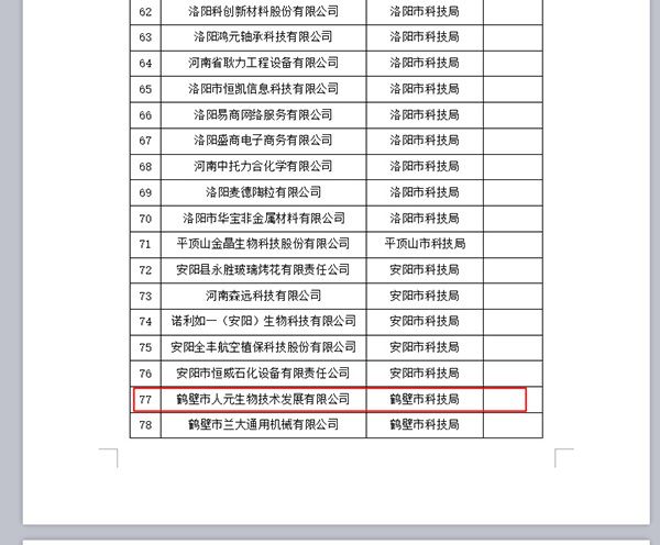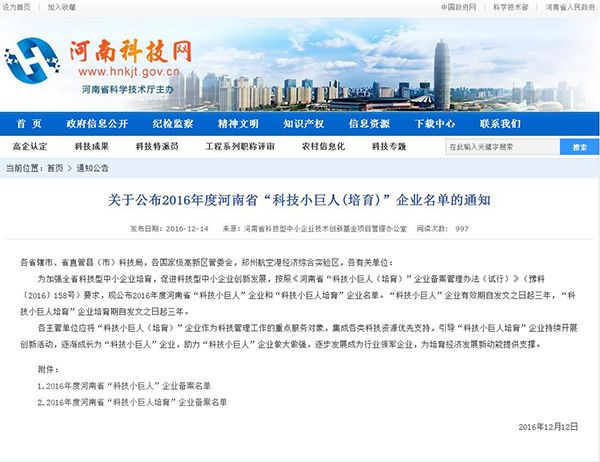 熱烈祝賀人元公司榮獲“河南省科技小巨人培育企業(yè)”