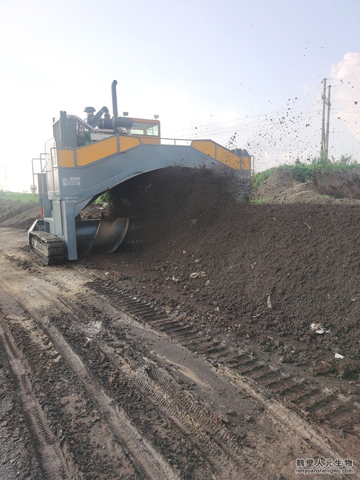 行車式翻拋機:沿發(fā)酵槽(長 20-70m、寬 3-25m)軌道移動,翻拋齒呈螺旋狀,可將物料徹底翻轉(zhuǎn)并移位,配合底部通風系統(tǒng)(風機供氧),精準控制發(fā)酵溫度(55-70℃)。